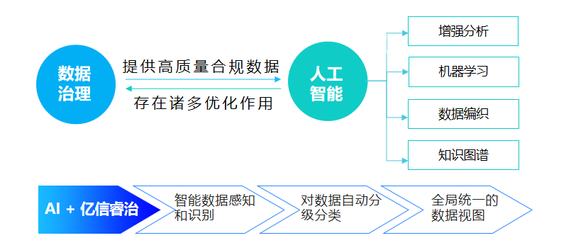 BI系統,助力走向ABI的最佳實踐。在數據治理方面,睿治數據治理平臺不斷融合AI新技術,力求通過智能化管理來簡化數據治理實施過程,目前可實現“智規”、“智檢”、“智盤”、“智問”。