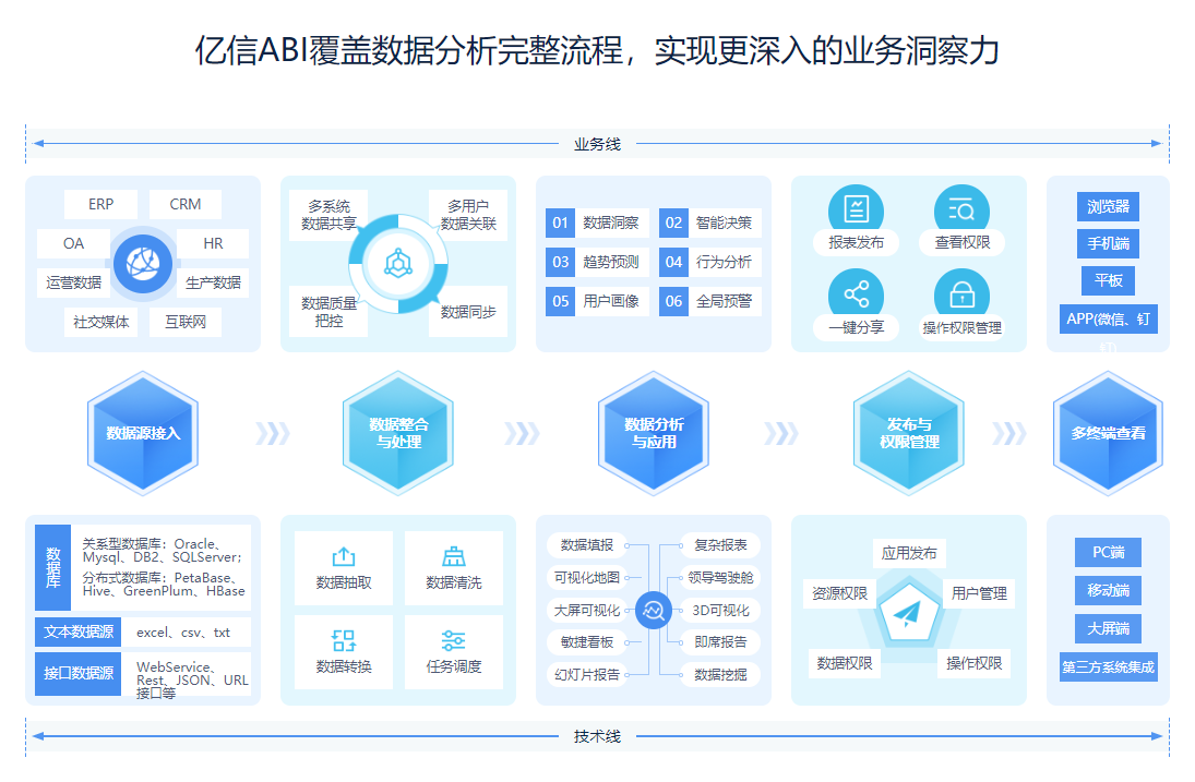 作為一款全能型數(shù)據(jù)分析工具,億信ABI不僅支持連接類似oracle、mysql之類的數(shù)據(jù)庫(kù),還支持類似文件數(shù)據(jù)或者網(wǎng)絡(luò)接口數(shù)據(jù),數(shù)據(jù)來源支持廣泛;