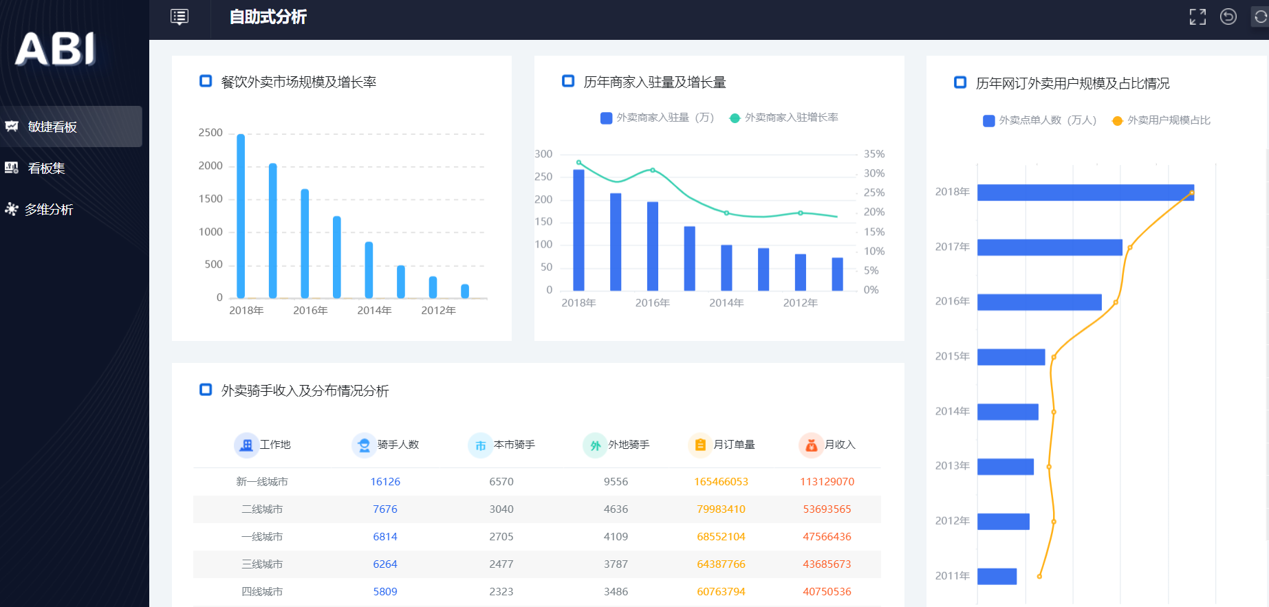 億信ABI打通了從數(shù)據(jù)接入、到數(shù)據(jù)建模與處理、再到數(shù)據(jù)分析與挖掘整個(gè)數(shù)據(jù)應(yīng)用全鏈路,可滿足企業(yè)經(jīng)營(yíng)中各類復(fù)雜的分析需求,幫助企業(yè)實(shí)現(xiàn)高效數(shù)字化轉(zhuǎn)型。