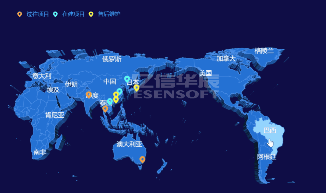 將標點和地圖相結合,以地圖為背景,將每個國家的數據通過標點的形式直觀呈現。
