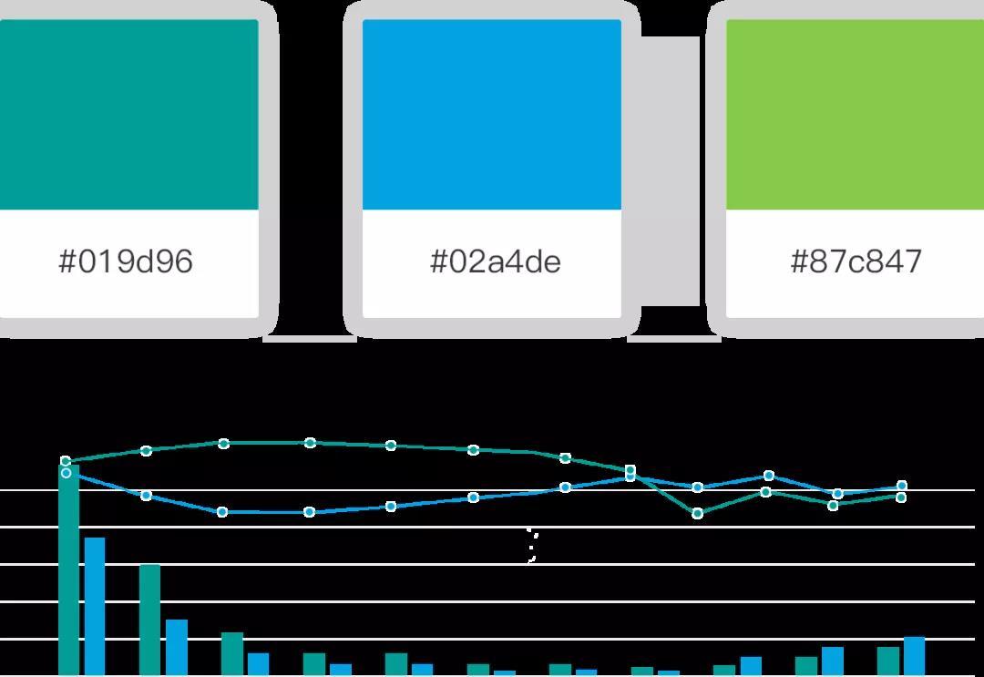 當圖表需要的顏色較多時,建議最多不超過12種色相。通常情況下人在不連續的區域內可以分辨6~12種不同色相。過多的顏色對傳達數據是沒有作用的,反而會讓人產生迷惑。